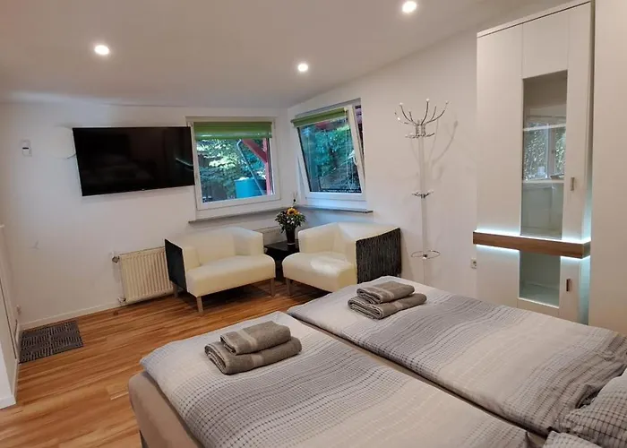 Dieses Apartment liegt 15 Minuten mit dem Auto vom K21 Ständehaus beziehungsweise auch 20 Minuten mit dem Auto von der Kirche St. Maximilian entfernt. Das Naturschutzgebiet Düsselaue bei Gödinghoven ist in einer 2 km Entfernung von diesen Unterkünften.